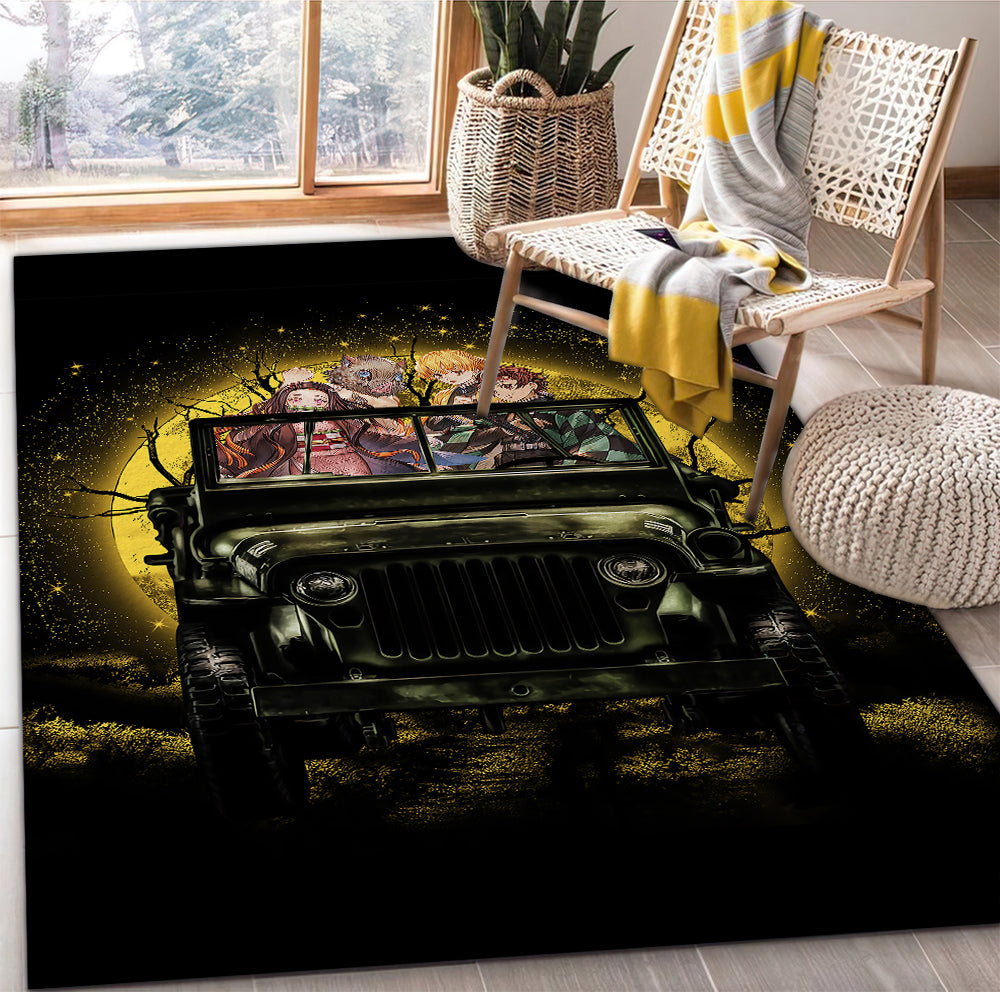 Tapis Demon Slayer Ride Jeep Funny Anime Moonlight Halloween Rug Carpet Rug Home Room Decor