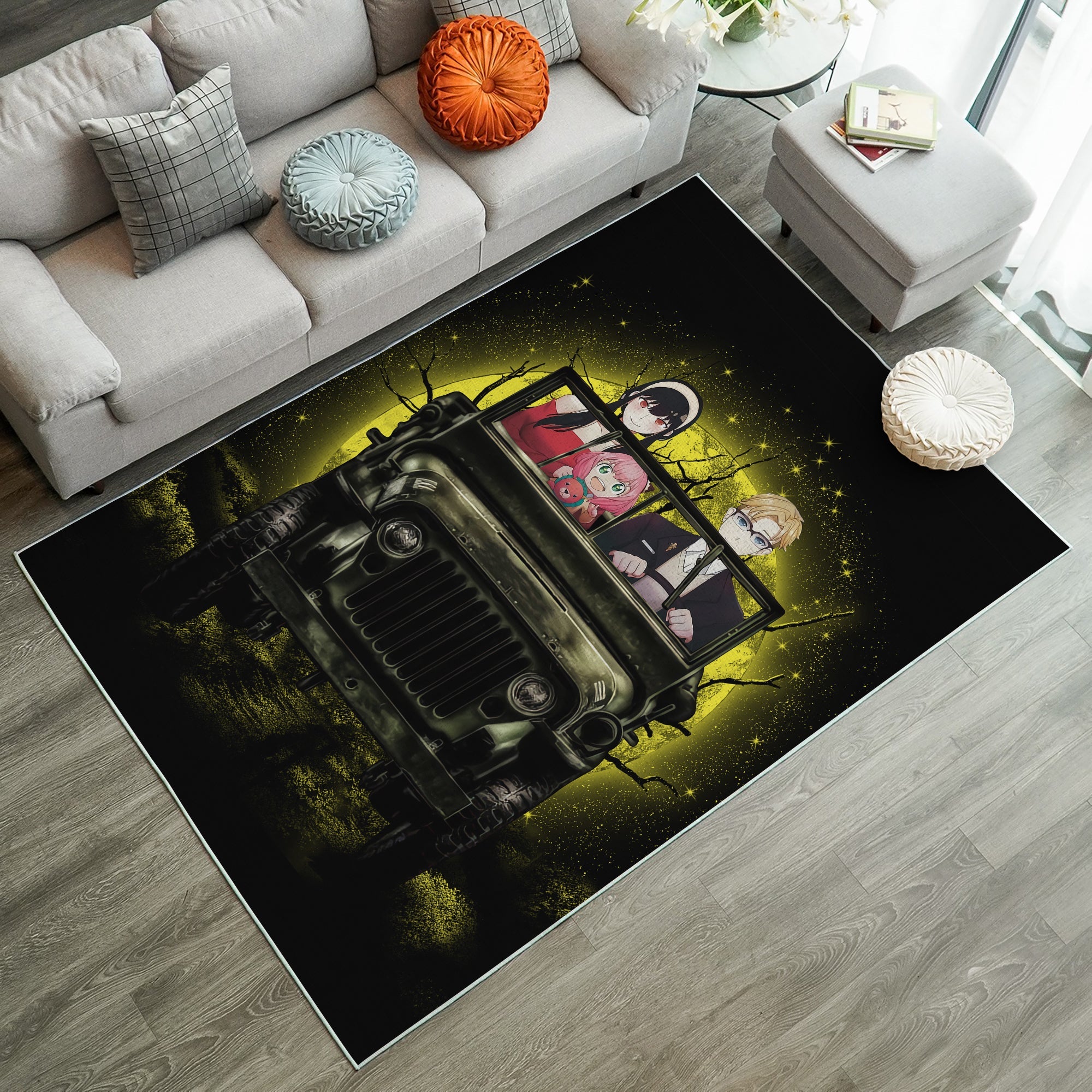 Tapis Spy x Family Yor And Anya Ride Jeep Funny Anime Moonlight Rug Carpet Rug Home Room Decor